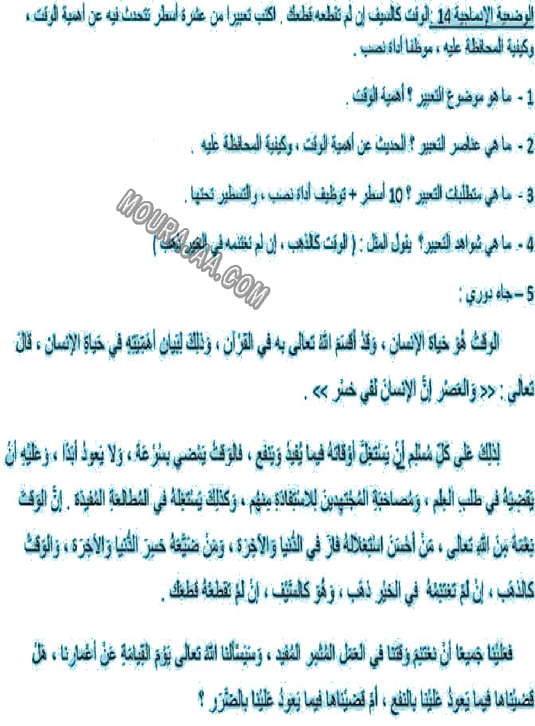 • موضوع إنتاج كتابي حول أهمية الوقت