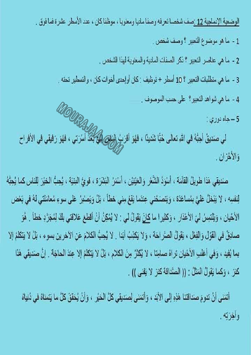 إنتاج كتابي حول وصف شخص سنة خامسة ابتدائي ابتدائي pdf
