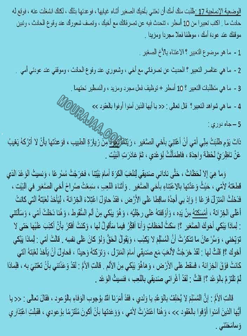• موضوع إنتاج كتابي حول الاعتناء بالاخ الصغير