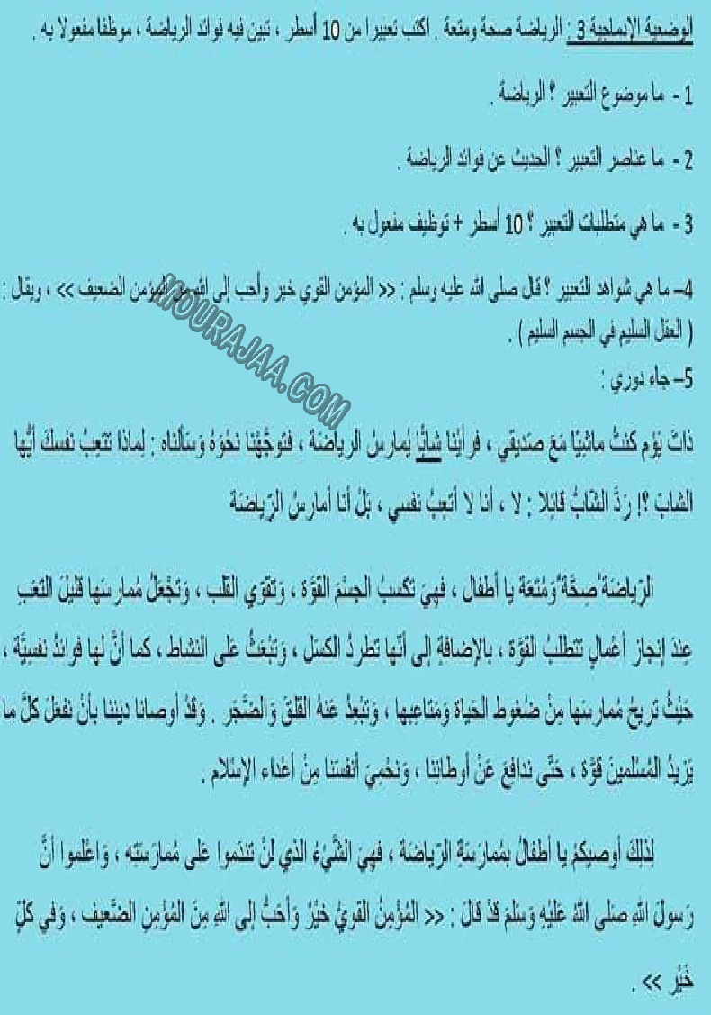 • موضوع إنتاج كتابي حول الرياضة