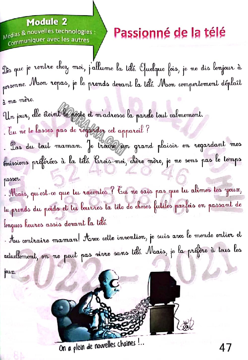 Télécharger une expression écrite sur le thème passionne de la tele, destinée aux élèves de sixieme de l’enseignement primaire en Tunisie.