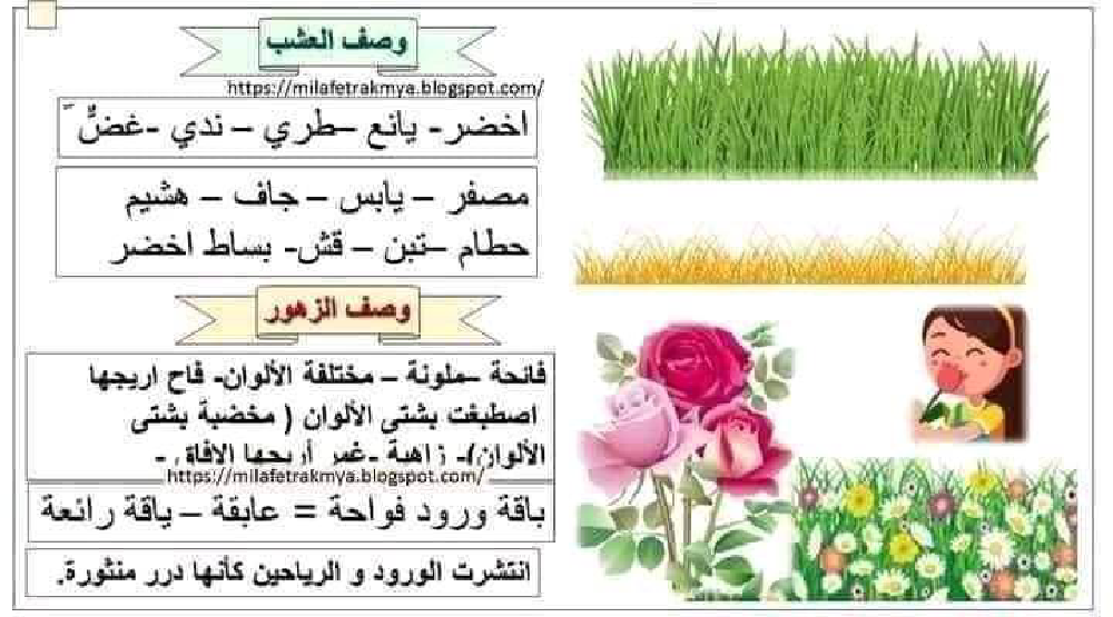 • موضوع إنتاج كتابي حول وصف العشب