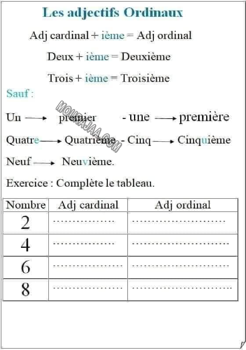 adjectifs ordinaux صفحة 1