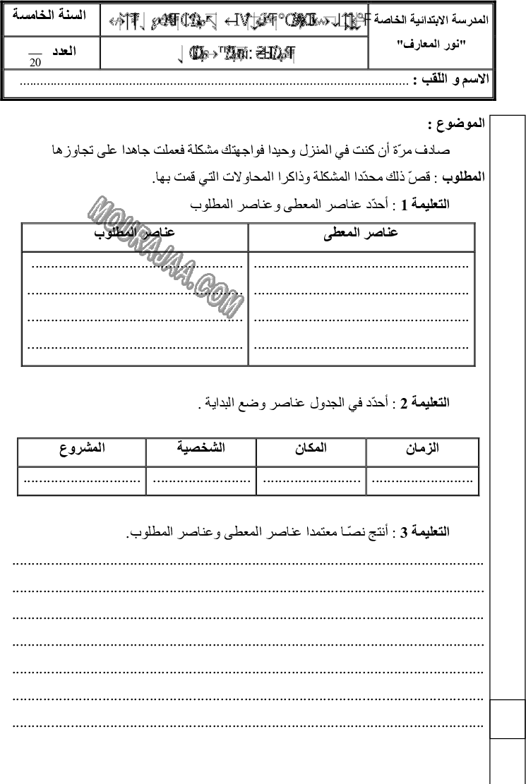 ???? هذا الامتحان مخصص لتلاميذ سنة خامسة ابتدائي بتونس لمساعدتهم في تقييم مستواهم في مادة انتاج كتابي والاستعداد الجيد للامتحانات الرسمية.