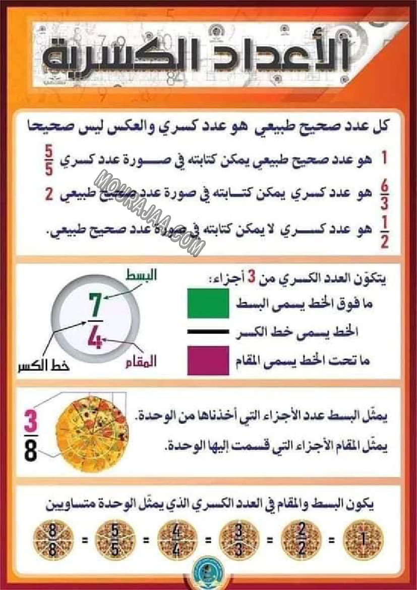 📚 هذا الدرس مخصص لتلاميذ التعليم الابتدائي لمساعدتهم على فهم درس الاعداد الكسرية في مادة رياضيات بطريقة سهلة ومنظمة.