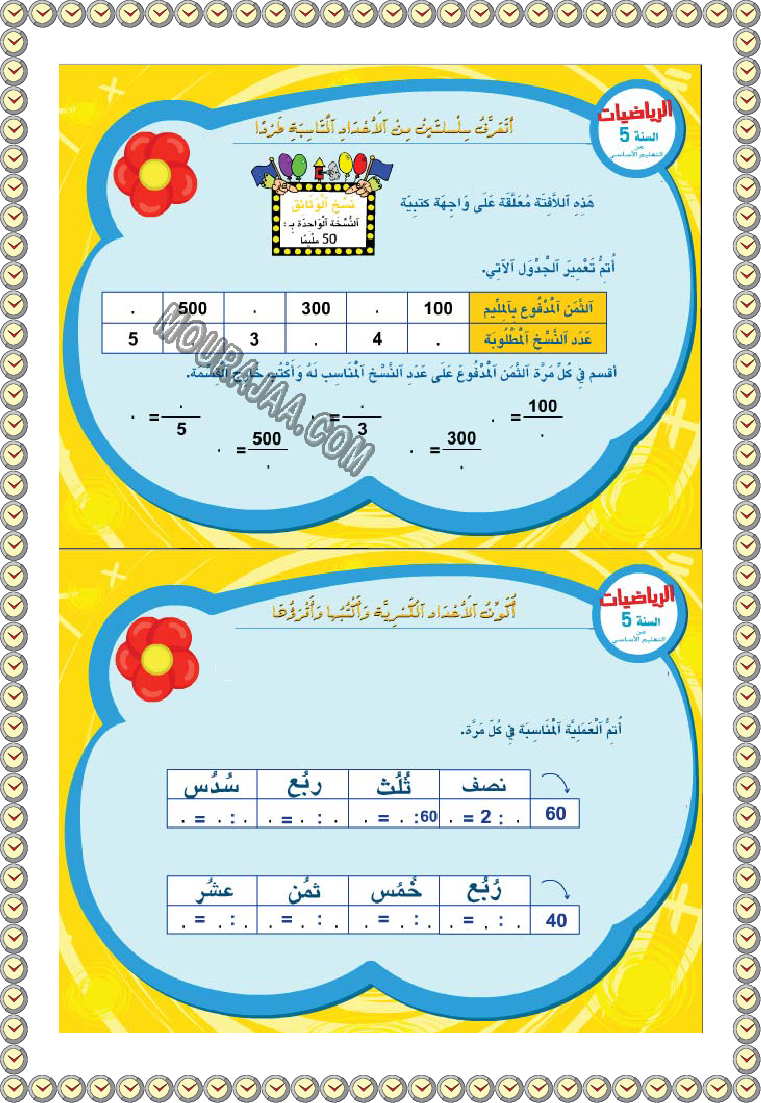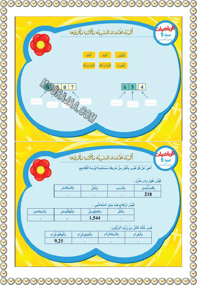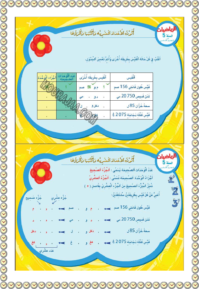 • مناسب لتلاميذ سنة خامسة ابتدائي