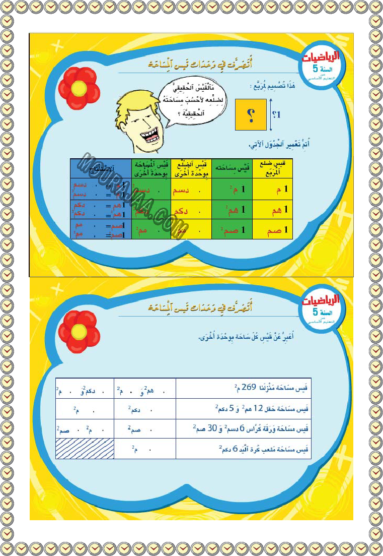 تحميل درس المساحة في مادة رياضيات موجه لتلاميذ سنة خامسة ابتدائي من التعليم الابتدائي بتونس، مع شرح مبسط يساعد على الفهم السريع ويعتمد على المنهج التونسي.