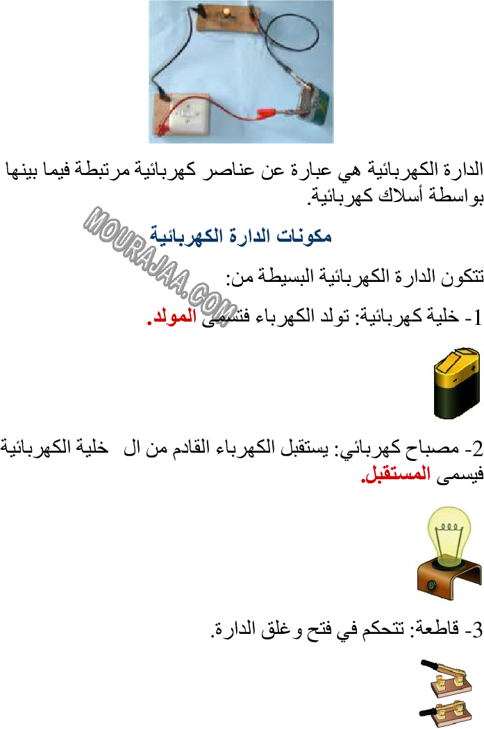 📚 هذا البحث مخصص لتلاميذ التعليم الابتدائي لمساعدتهم على إنجاز بحوث مدرسية حول الدارة الكهربائية بطريقة مبسطة ومنظمة.