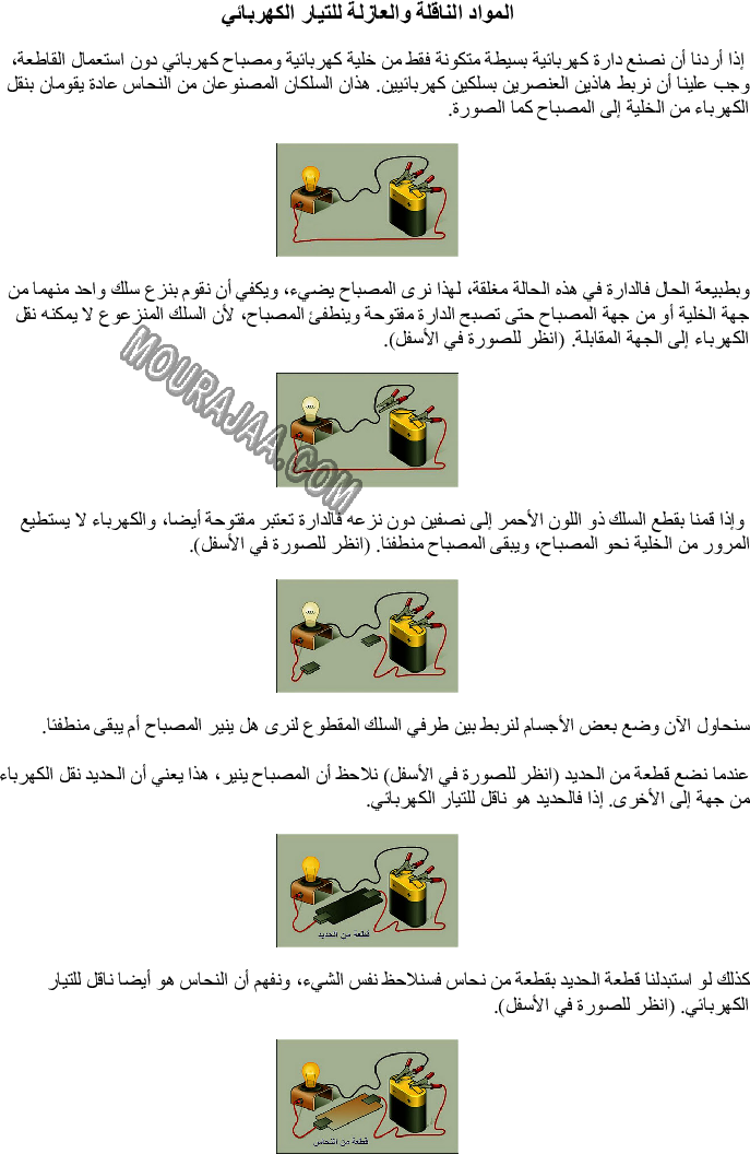 بحث حول المواد الناقلة والعازلة للتيار الكهربائي سنة خامسة ابتدائي pdf