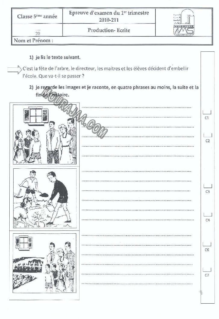 Examen exp_fr cinquieme premier trimestre avec correction