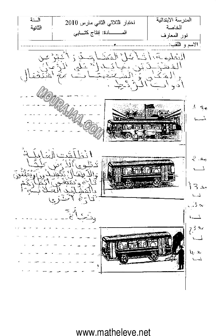 امتحان انتاج كتابي سنة ثانية ابتدائي الثلاثي الثاني مع الإصلاح