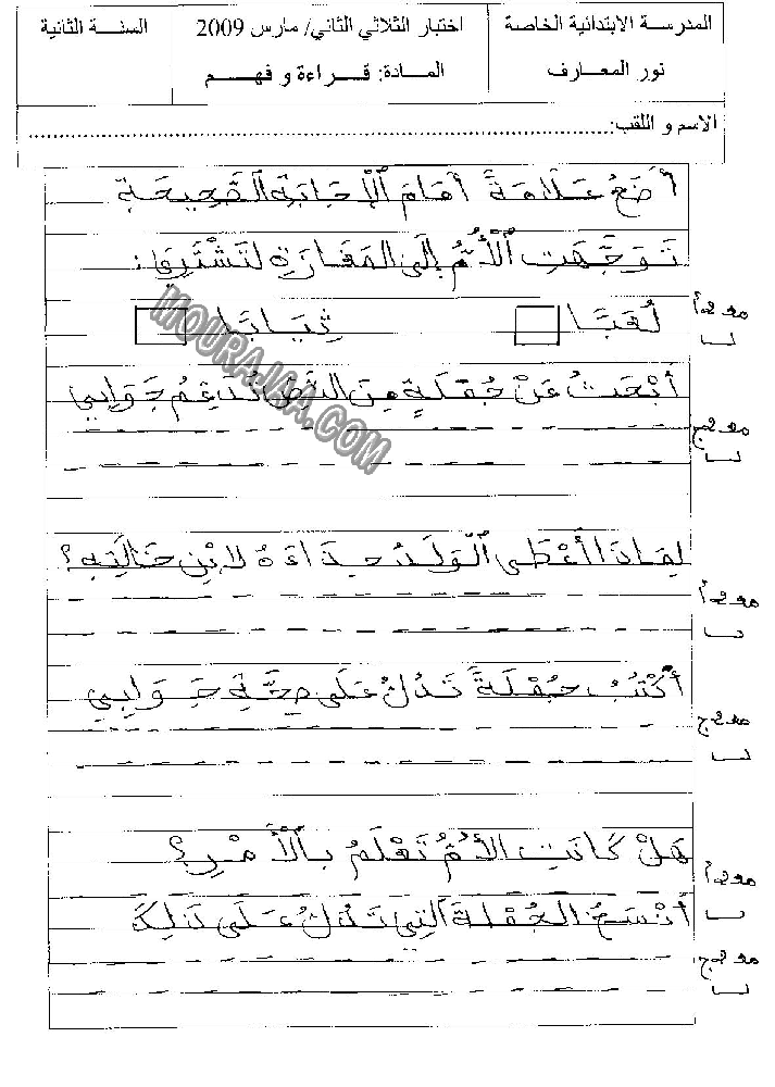 امتحان قراءة سنة ثانية ابتدائي الثلاثي الثاني مع الإصلاح