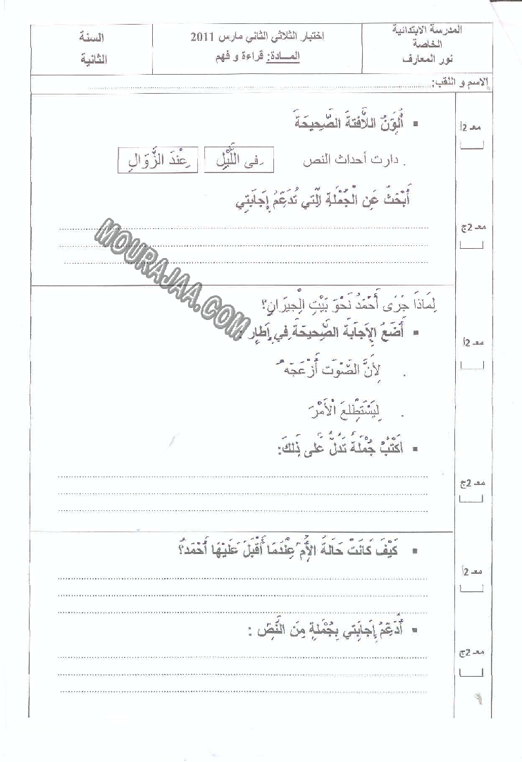 امتحان قراءة سنة ثانية ابتدائي الثلاثي الثاني مع الإصلاح