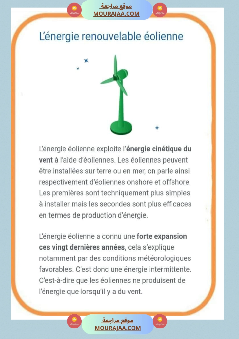 📚 Cette leçon aide les élèves de cinquieme à comprendre le cours energie renouvelable en lect_fr de manière simple et structurée.