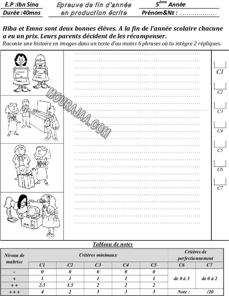 📚 المستوى: سنة خامسة ابتدائي