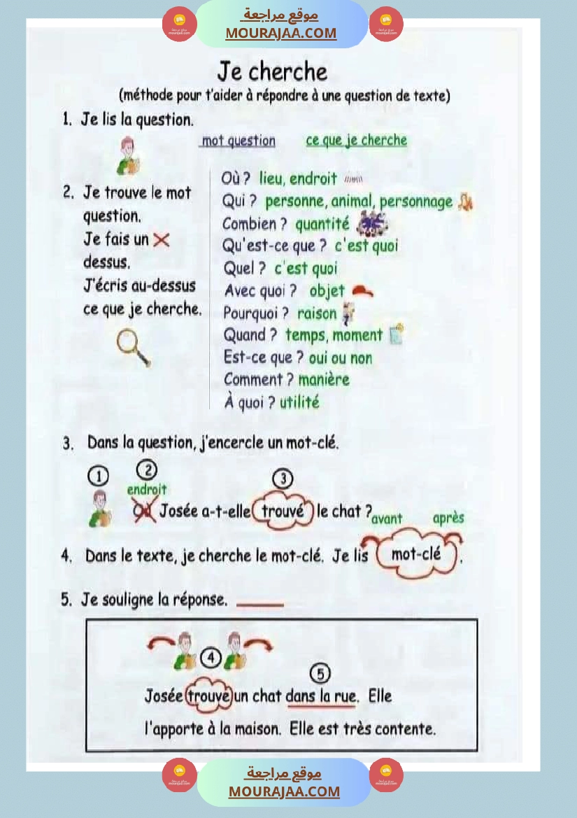 Télécharger la leçon je cherche en lect_fr, destinée aux élèves de cinquieme de l’enseignement primaire en Tunisie, avec une explication simple et claire.