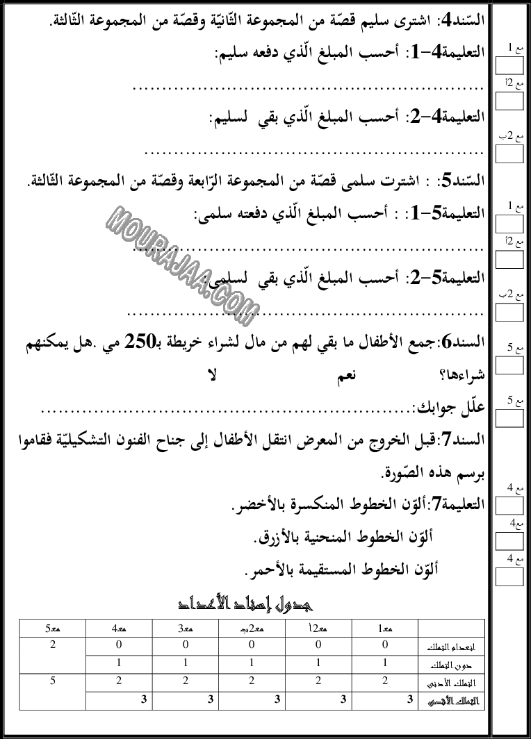 امتحان رياضيات سنة ثانية ابتدائي الثلاثي الثاني مع الإصلاح