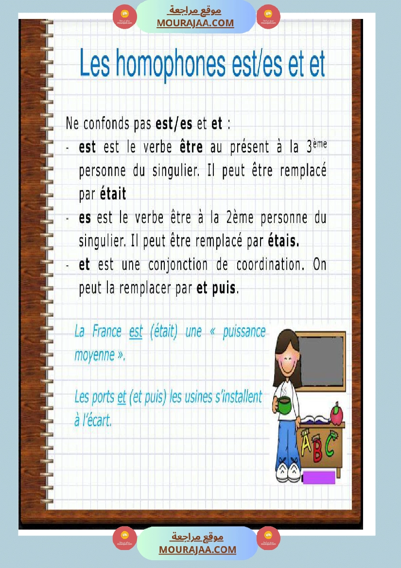 Télécharger la leçon les homophones grammaticaux en lect_fr, destinée aux élèves de cinquieme de l’enseignement primaire en Tunisie, avec une explication simple et claire.