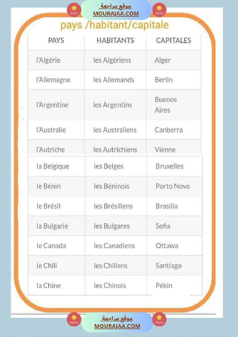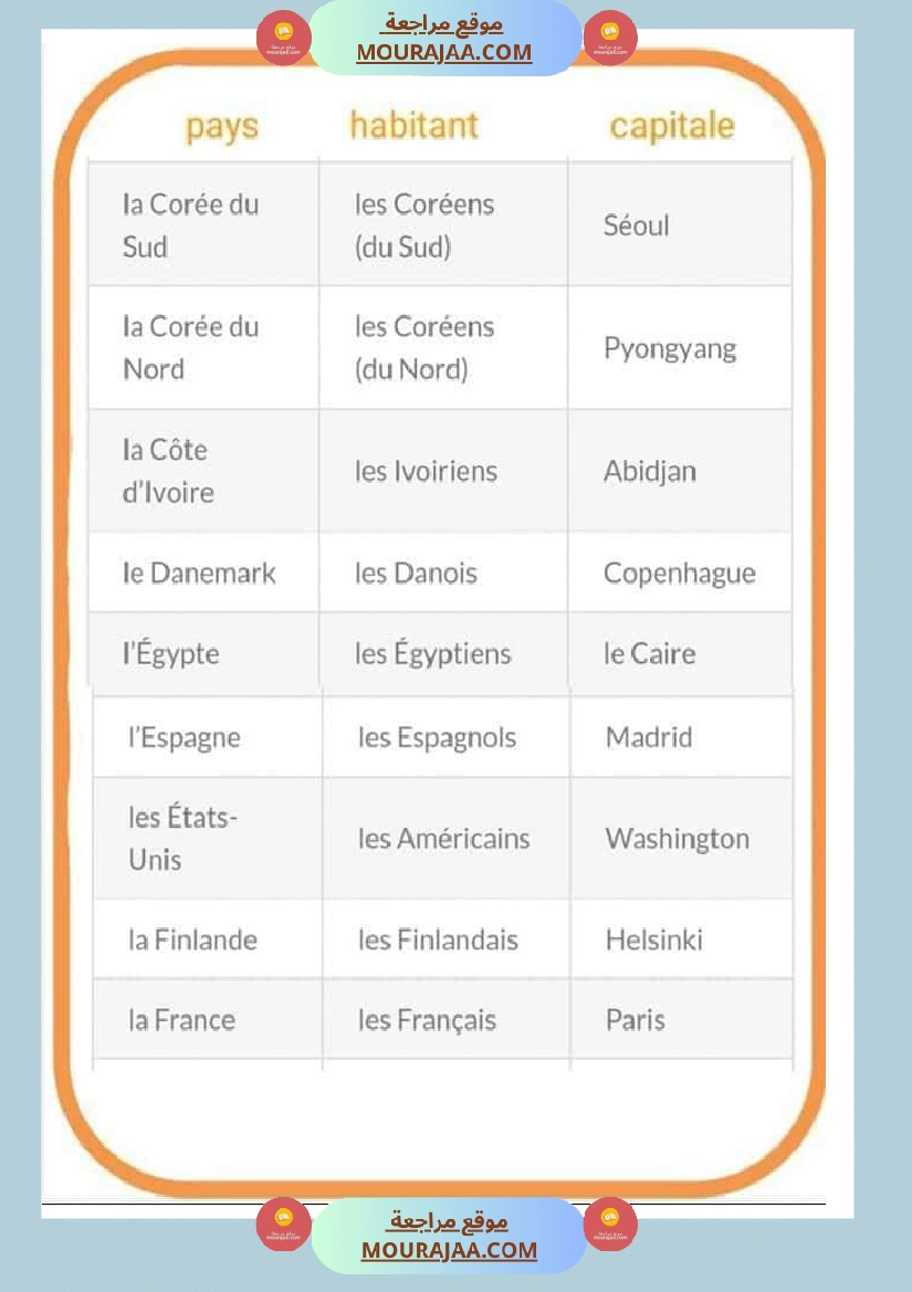 📚 Cette leçon aide les élèves de cinquieme à comprendre le cours les pays nom-habitant-capitale en lect_fr de manière simple et structurée.