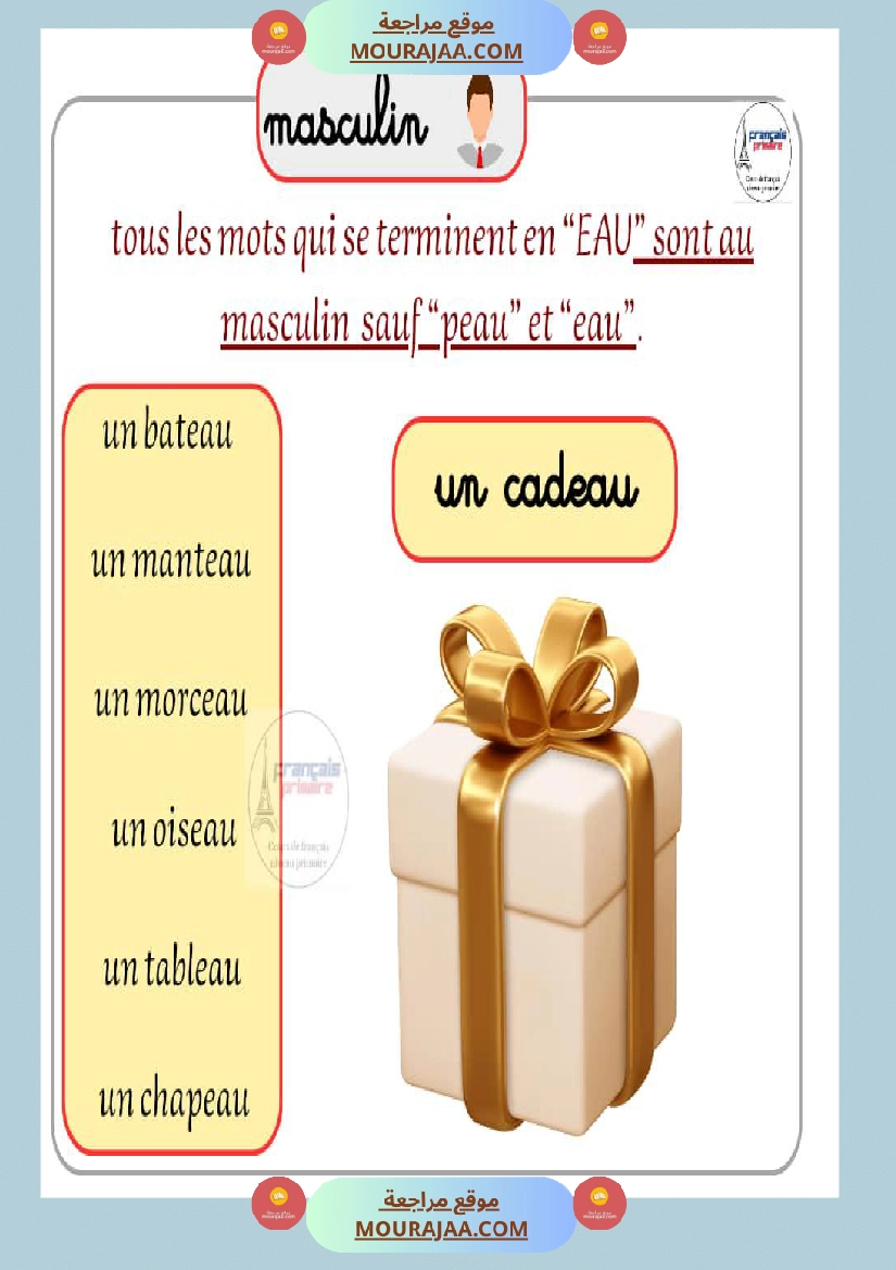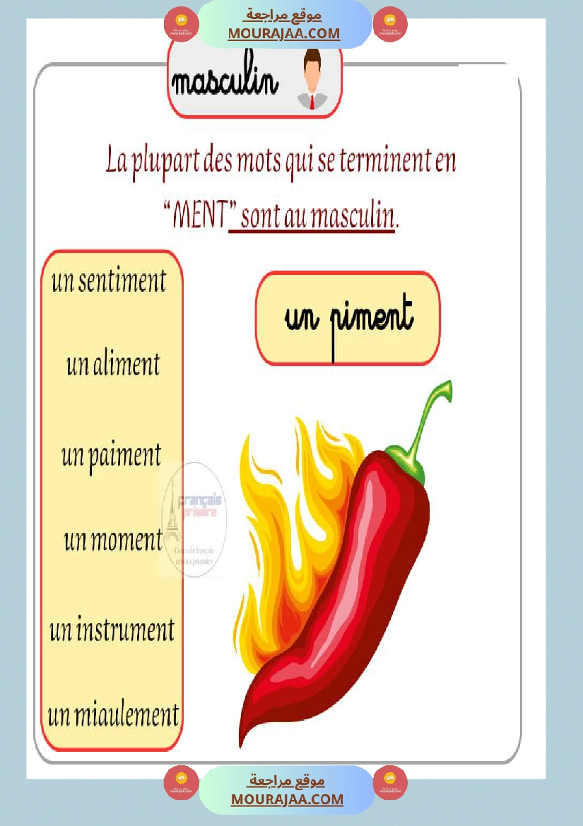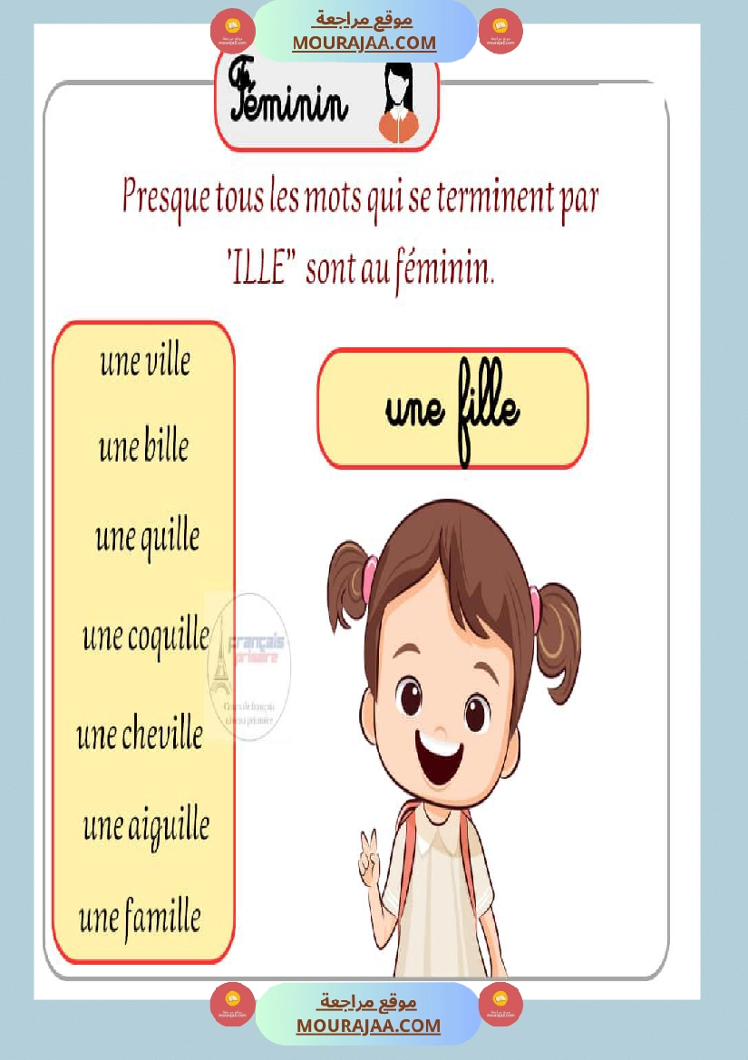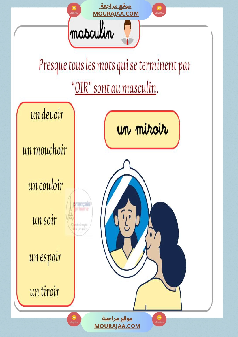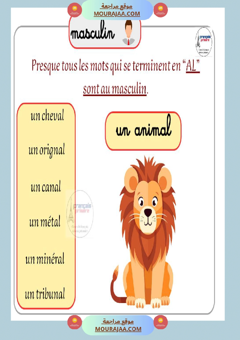 Télécharger la leçon masculin feminin en lect_fr, destinée aux élèves de cinquieme de l’enseignement primaire en Tunisie, avec une explication simple et claire.