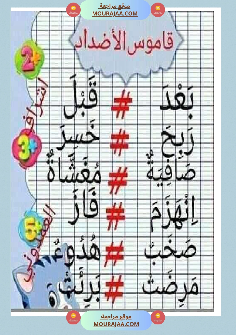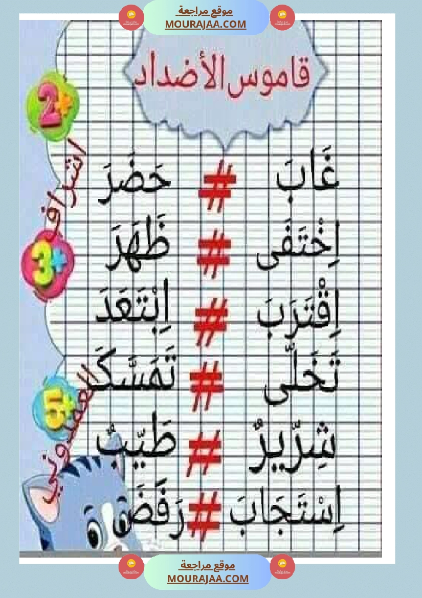 ???? هذا الدرس مخصص لتلاميذ التعليم الابتدائي لمساعدتهم على فهم درس بعض المتضادات في مادة قراءة بطريقة سهلة ومنظمة.