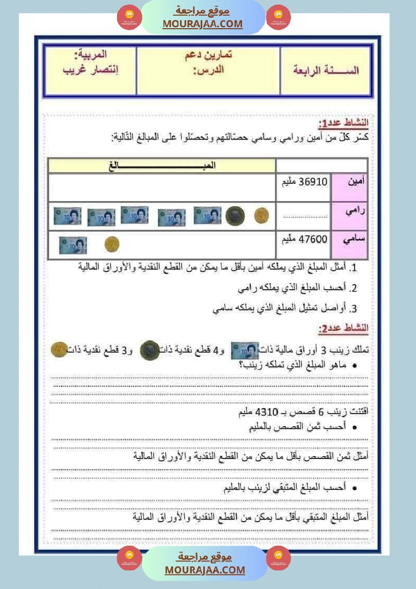• مناسب لتلاميذ سنة رابعة ابتدائي