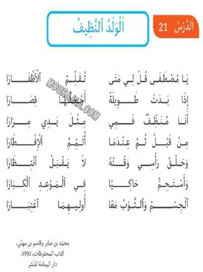 ???? هذه محفوظات مخصصة لتلاميذ التعليم الابتدائي لمساعدتهم على حفظ الولد النظيف وتنمية مهاراتهم اللغوية.