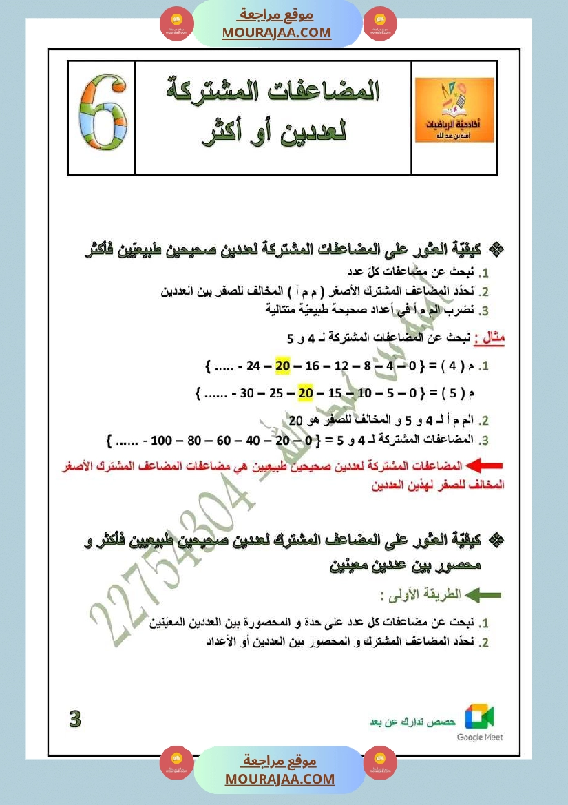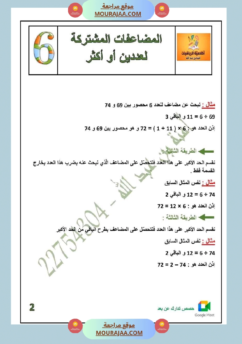 • شرح مبسط وواضح لدرس المضاعفات سنة سادسة