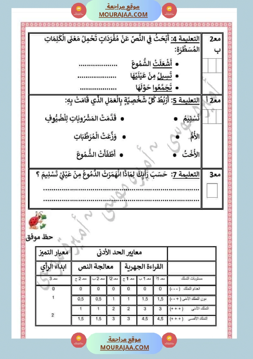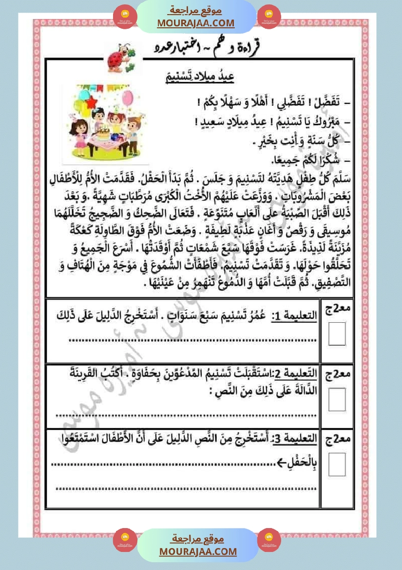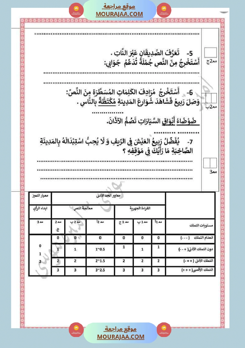 امتحان قراءة سنة ثانية ابتدائي الثلاثي الأول مع الإصلاح