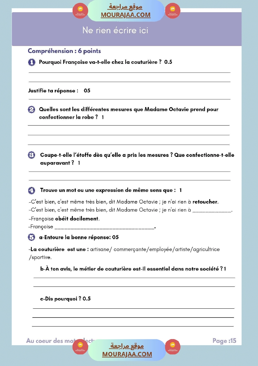 📚 Cet examen est destiné aux élèves de sixieme en Tunisie pour les aider à évaluer leur niveau en lect_fr et bien se préparer aux examens officiels.