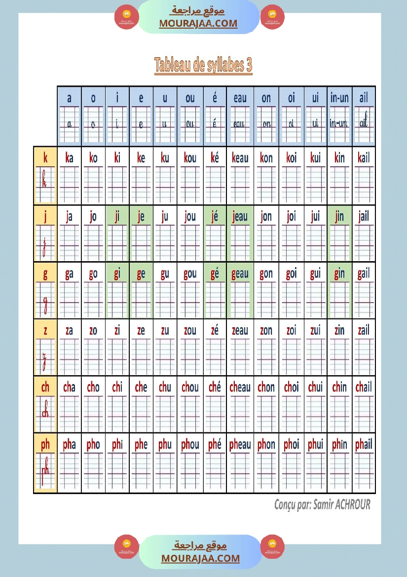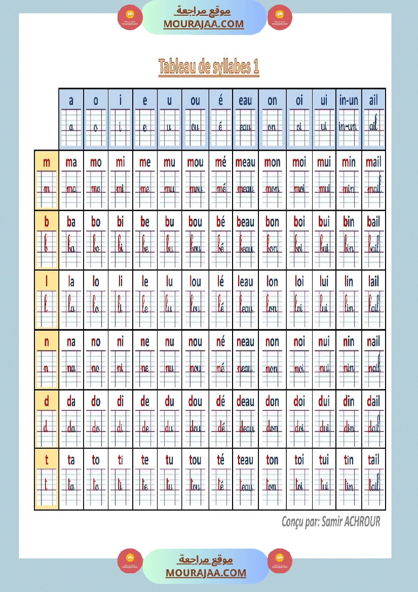 Télécharger la leçon tableau syllabique 4eme en lect_fr, destinée aux élèves de quatrieme de l’enseignement primaire en Tunisie, avec une explication simple et claire.