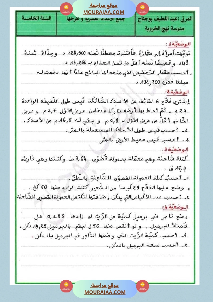 ???? هذا الدرس مخصص لتلاميذ التعليم الابتدائي لمساعدتهم على فهم درس السنة الخامسة في مادة رياضيات بطريقة سهلة ومنظمة.