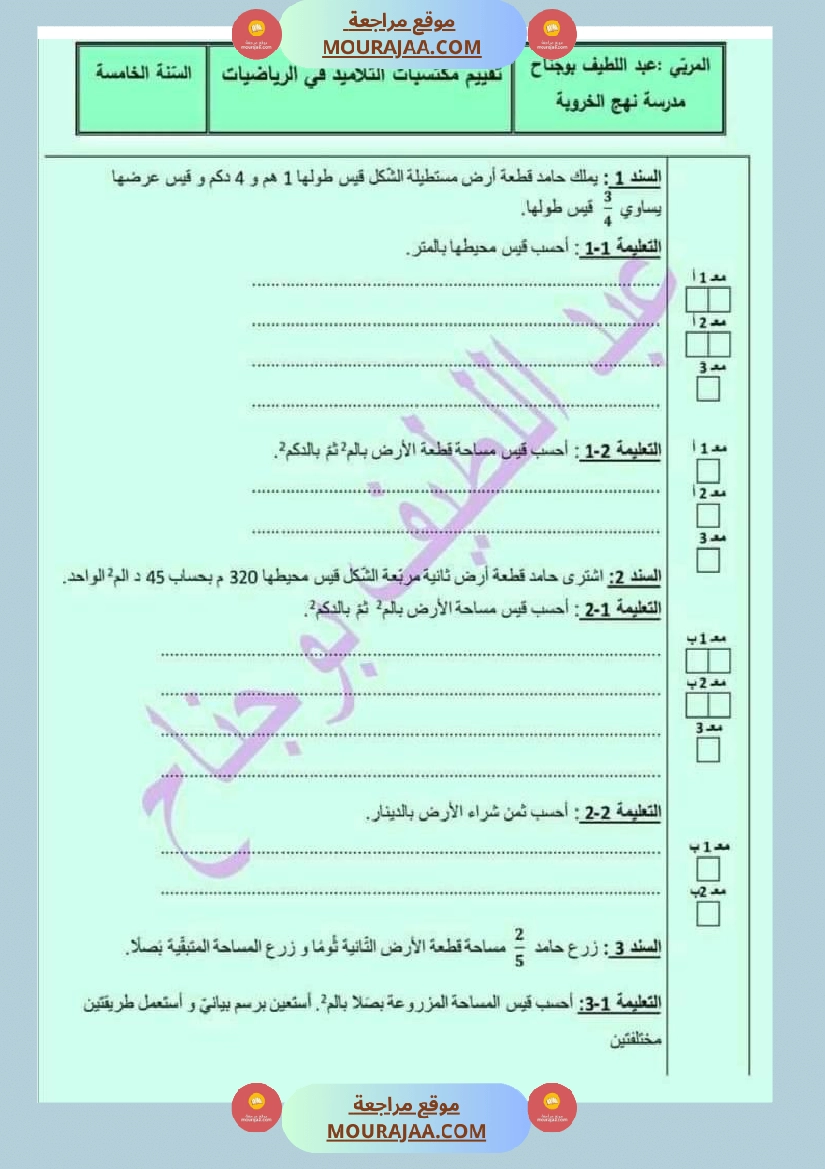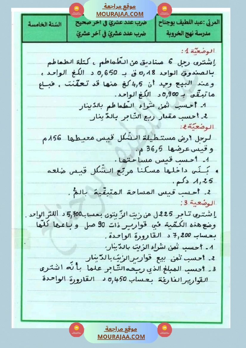 • مناسب لتلاميذ سنة خامسة ابتدائي