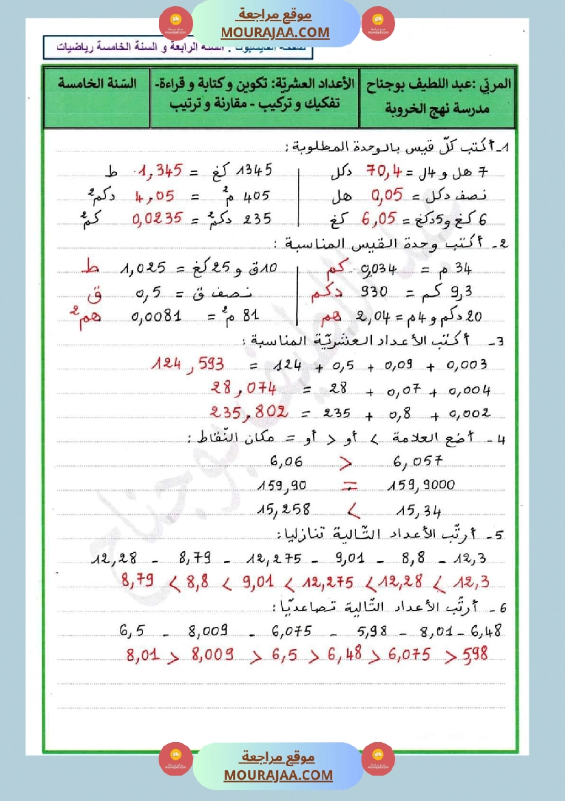درس سنة خامسة رياضيات 1 سنة خامسة ابتدائي ابتدائي pdf