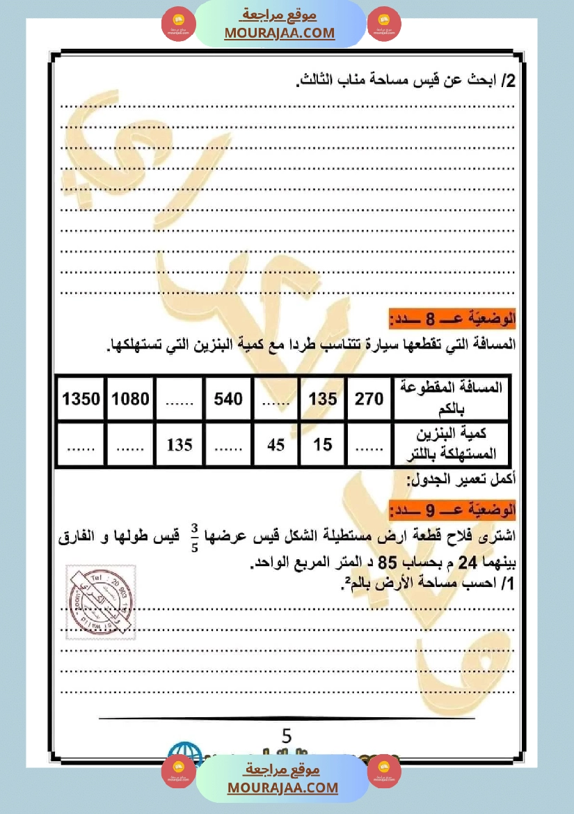 • مناسب لتلاميذ سنة خامسة ابتدائي