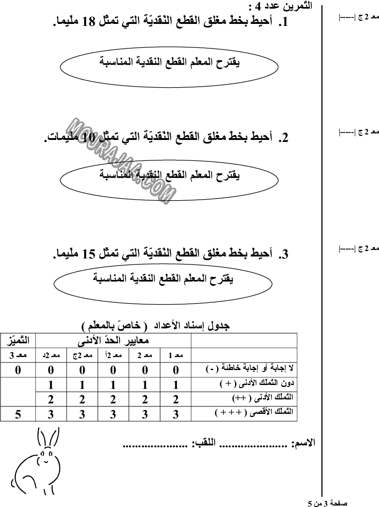 امتحان رياضيات سنة أولى ابتدائي الثلاثي الثاني مع الإصلاح