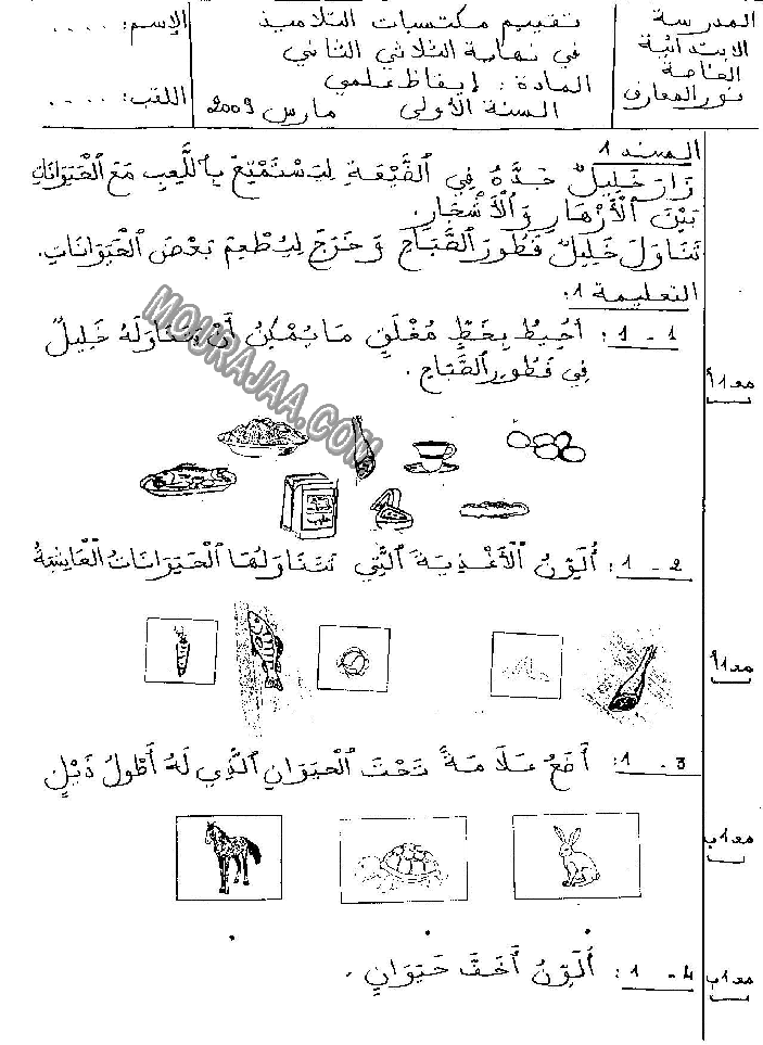 امتحان ايقاظ علمي سنة أولى ابتدائي الثلاثي الثاني مع الإصلاح
