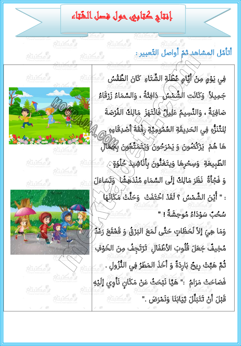 • موضوع إنتاج كتابي حول فصل الشتاء