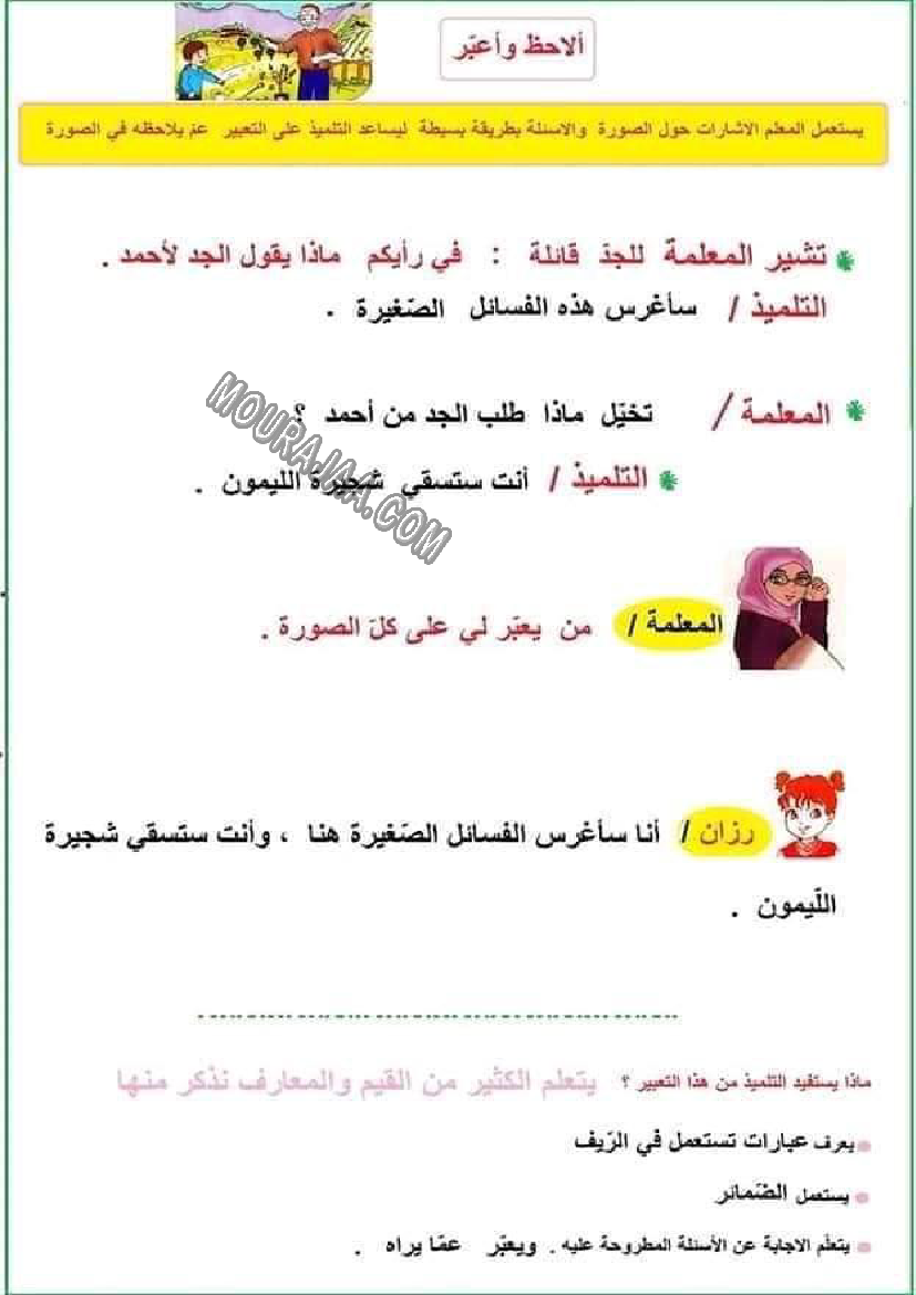 درس تعبير شفوي سنة اولى سنة أولى ابتدائي ابتدائي pdf