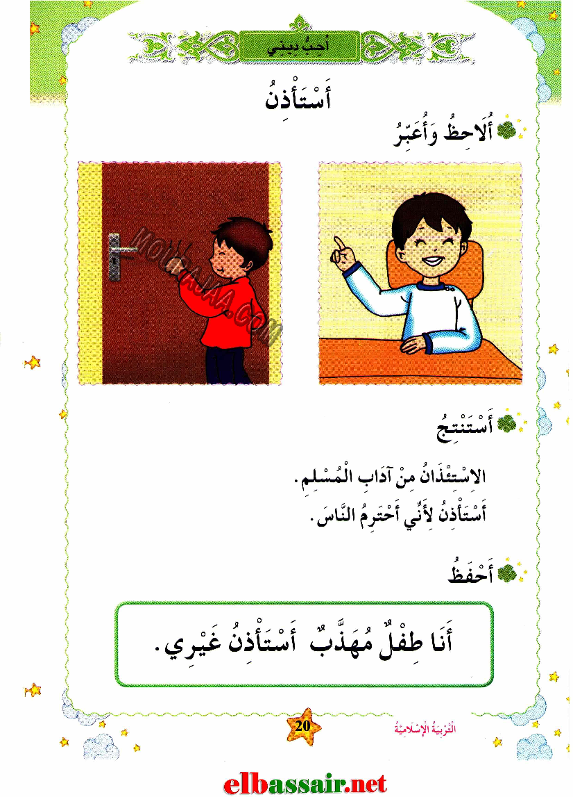 تحميل درس استاذن في مادة تربية اسلامية موجه لتلاميذ سنة أولى ابتدائي من التعليم الابتدائي بتونس، مع شرح مبسط يساعد على الفهم السريع ويعتمد على المنهج التونسي.