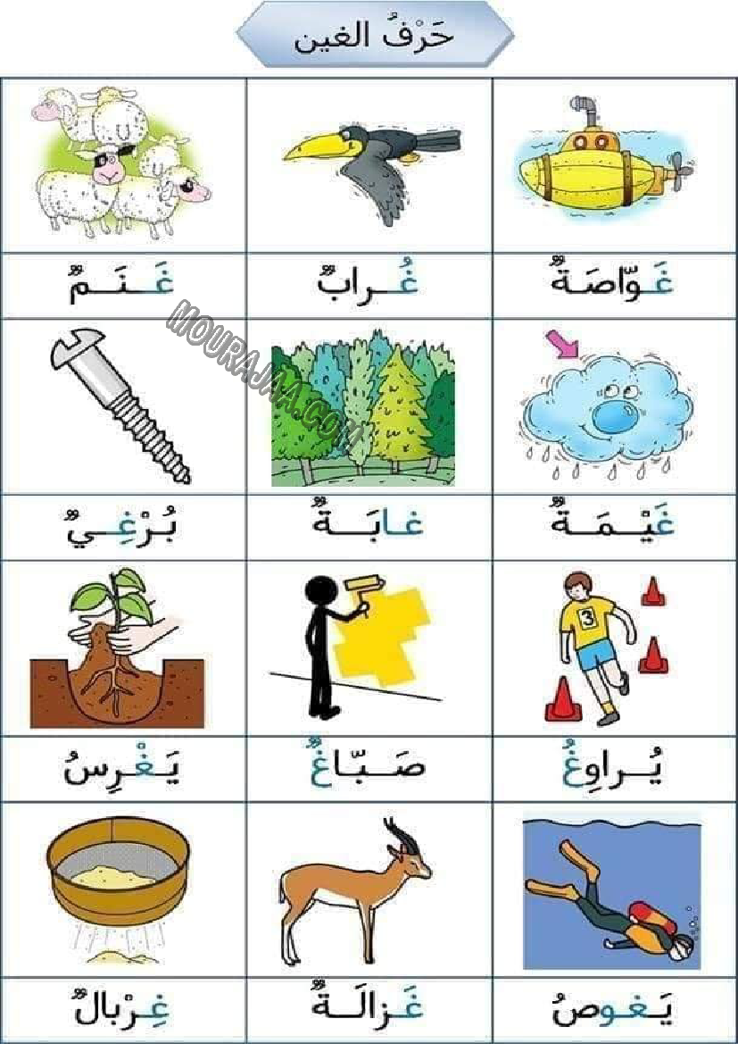 درس كلمات بحرف الغين سنة أولى ابتدائي ابتدائي pdf
