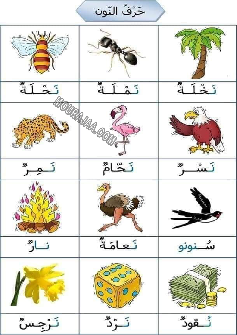 محتوى كلمات بحرف النون