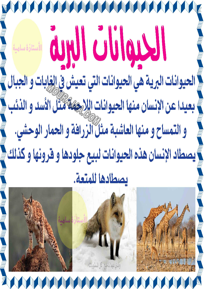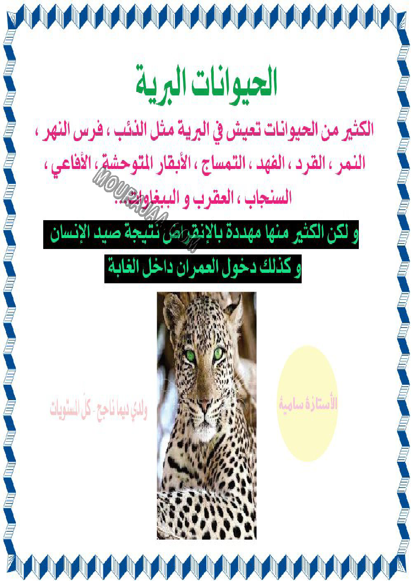 ???? هذا البحث مخصص لتلاميذ التعليم الابتدائي لمساعدتهم على إنجاز بحوث مدرسية حول حيوانات برية بطريقة مبسطة ومنظمة.