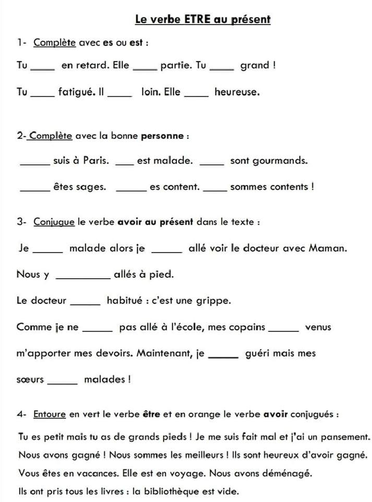 Affiche scolaire verbe etre quatrieme primaire PDF Tunisie