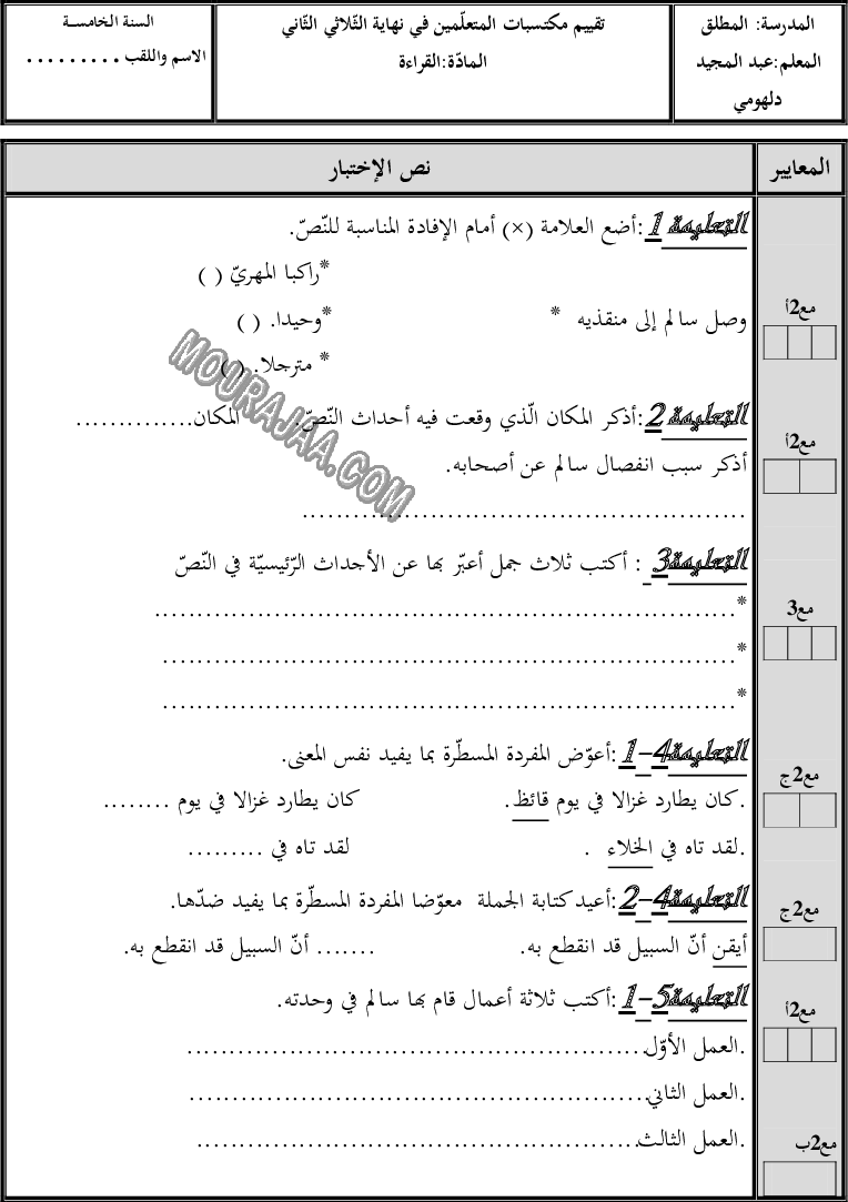 📚 المستوى: سنة خامسة ابتدائي