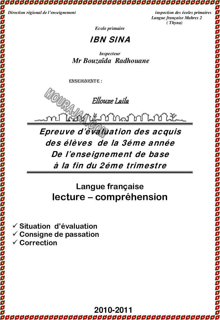 📚 Cet examen est destiné aux élèves de quatrieme en Tunisie pour les aider à évaluer leur niveau en lect_fr et bien se préparer aux examens officiels.