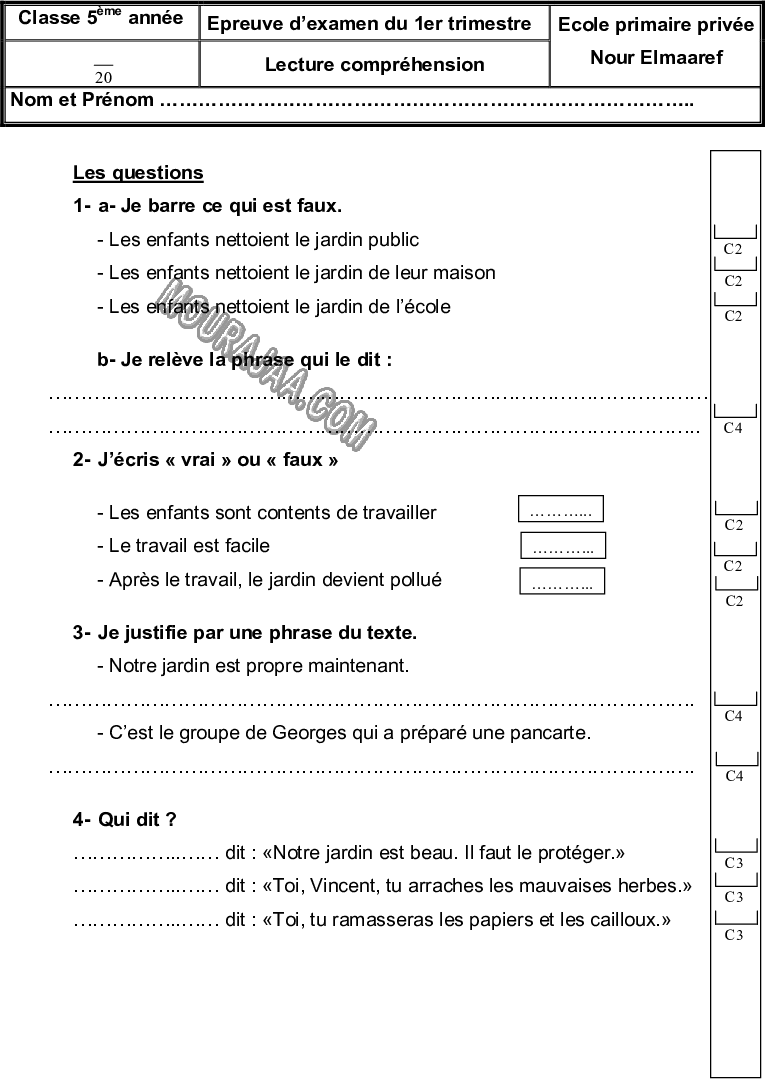 📚 Cet examen est destiné aux élèves de cinquieme en Tunisie pour les aider à évaluer leur niveau en lect_fr et bien se préparer aux examens officiels.