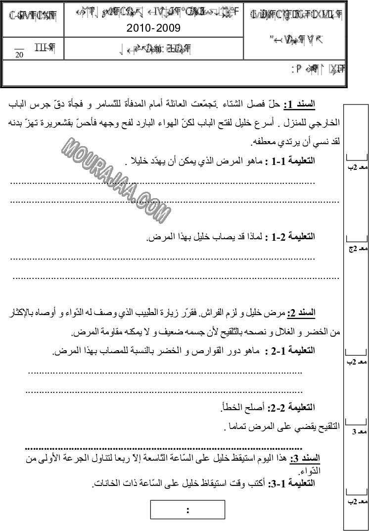 امتحان ايقاظ علمي سنة رابعة ابتدائي الثلاثي الأول مع الإصلاح