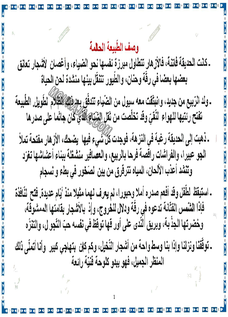 📚 هذا الإنتاج الكتابي مخصص لتلاميذ التعليم الابتدائي لمساعدتهم على كتابة موضوع حول وصف-الطبيعة-لإثراء-الإنتاج-الكتابي بطريقة منظمة وسليمة.