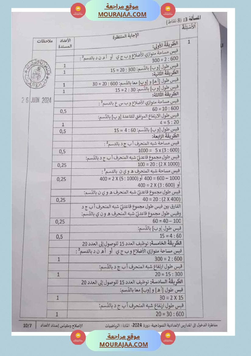 الاصلاح الرسمي لمناظرة الرياضيات 2024